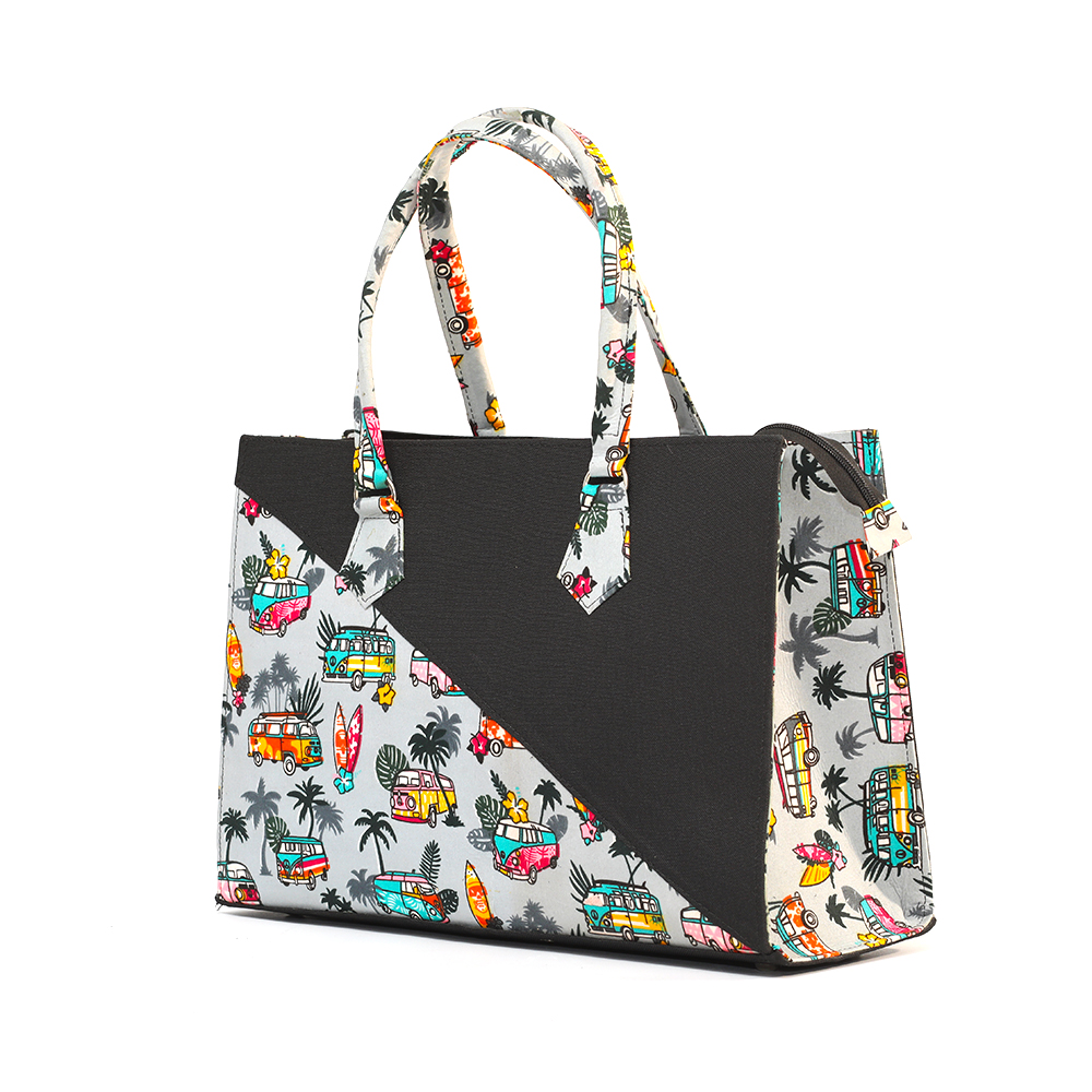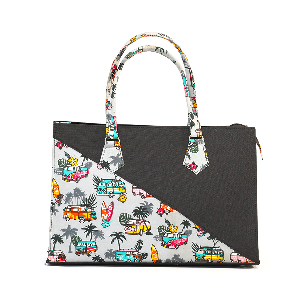 Algeria, the black and grey ankara tote; black velvet inner lining with inner zipless side pocket. Your very handy and practical multi-purpose tote. Perfect for the office; also great as a carry-all for that overnight stay or long weekend away.