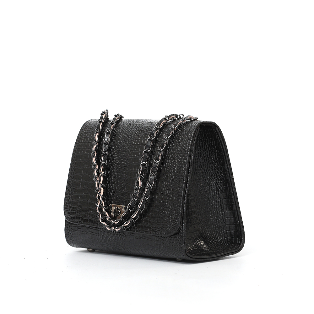 The black versatile leather handbag with black velvet inner lining and inner zipless side pocket. Perfect to dress up or down with, and is a good size for holding the fabulous woman’s personal effects for almost any outing.