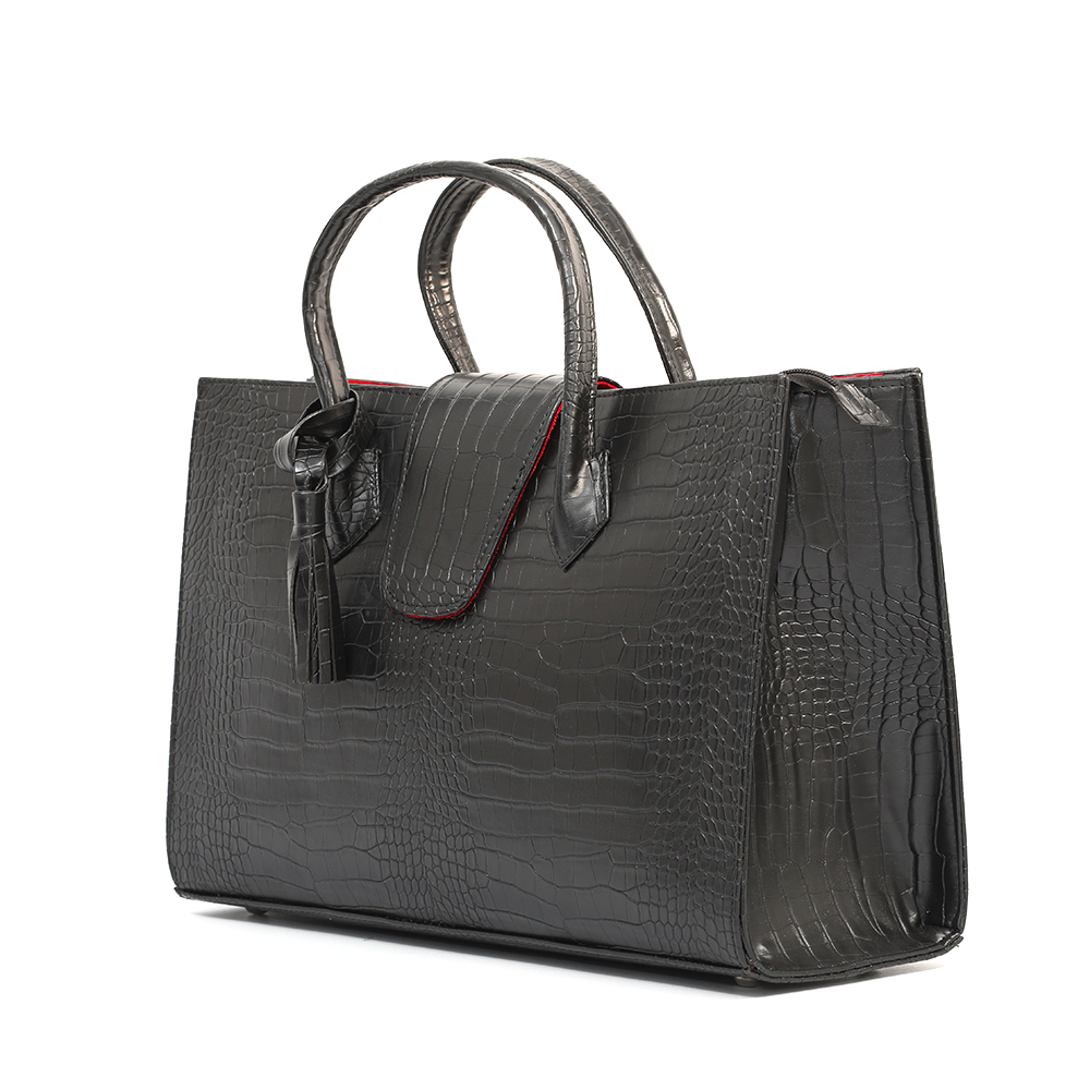 Leather Tote, the leather tote; black velvet inner lining with inner zipless side pocket. Your very handy and practical multi-purpose tote. Perfect for the office; also great as a carry-all for that overnight stay or long weekend away.