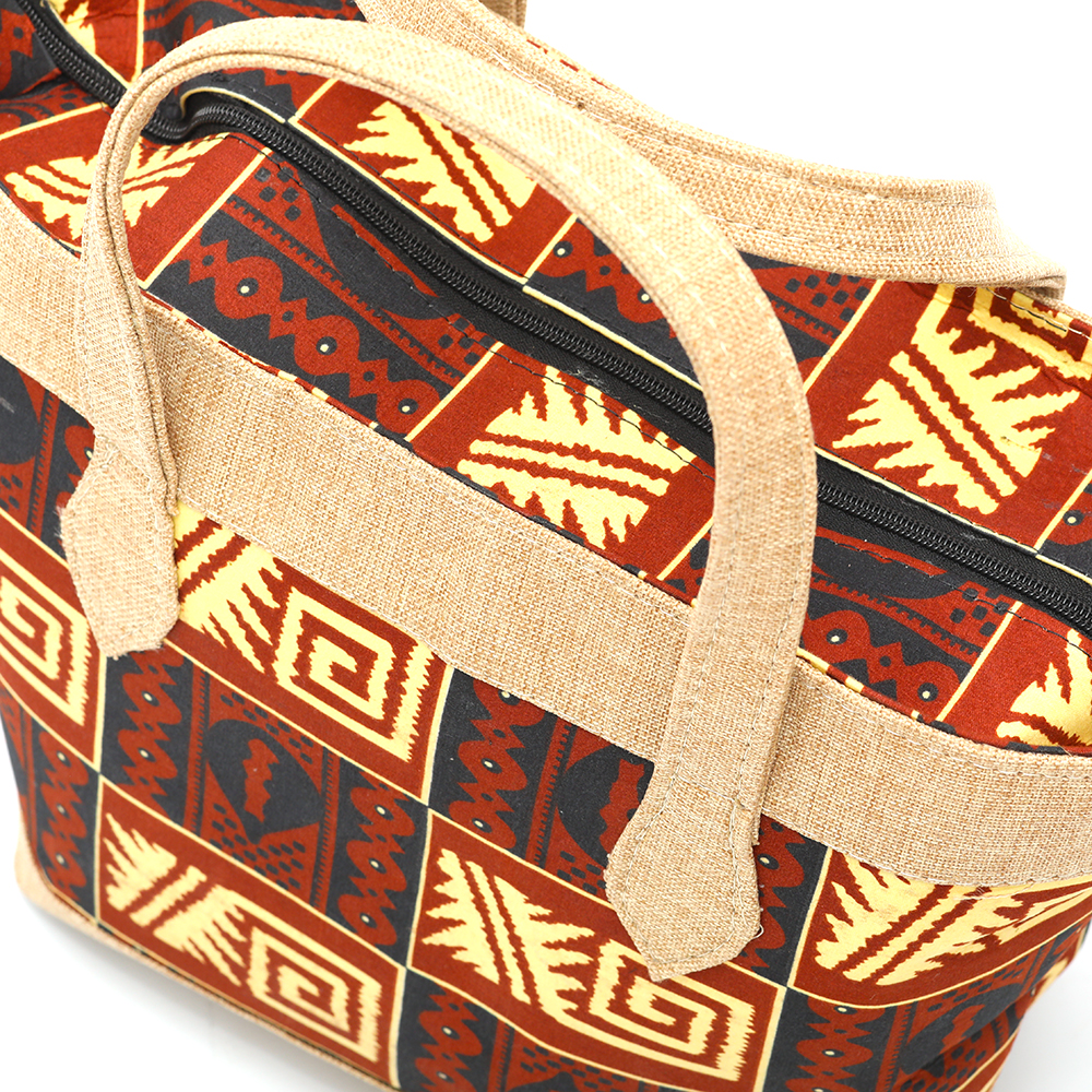 Central African Republic, the beige, yellow and brown ankara shopper; black velvet inner lining with inner zipless side pocket. Your very handy and practical multi-purpose handbag. Perfect for the office; also great as a carry-all for that overnight stay or long weekend away.