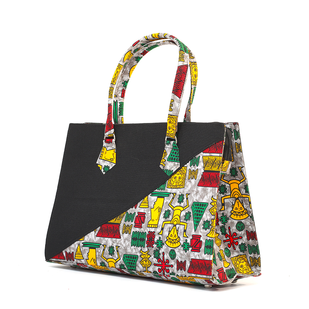 Ethiopia, the black/red ankara tote; black velvet inner lining with inner zipless side pocket. Your very handy and practical multi-purpose tote. Perfect for the office; also great as a carry-all for that overnight stay or long weekend away.