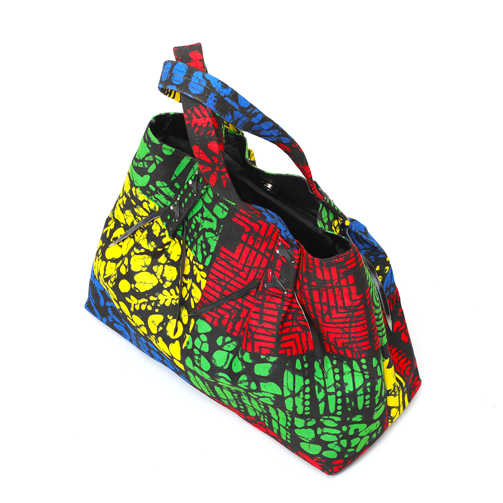 Kinshasa, the red, yellow, green and blue ankara bucket; black velvet inner lining with inner zipless side pocket. Your very handy and practical multi-purpose handbag. Perfect for the office; also great as a carry-all for that overnight stay or long weekend away.