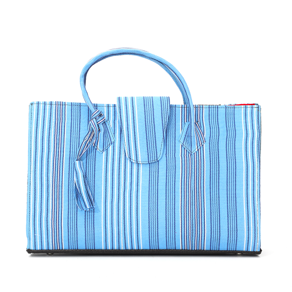 The Kigali aso-oke tote, with black velvet inner lining with inner zipless side pocket. Your very handy and practical multipurpose tote. Perfect for the office; also great as a carry-all for that overnight stay or long weekend away.
