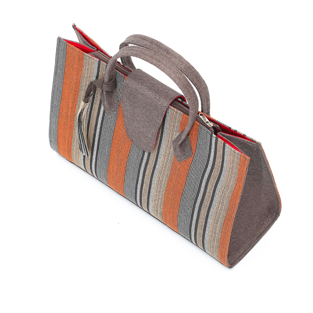 The Orange & Brown aso-oke tote, with black velvet inner lining with inner zipless side pocket. Your very handy and practical multipurpose tote. Perfect for the office; also great as a carry-all for that overnight stay or long weekend away.